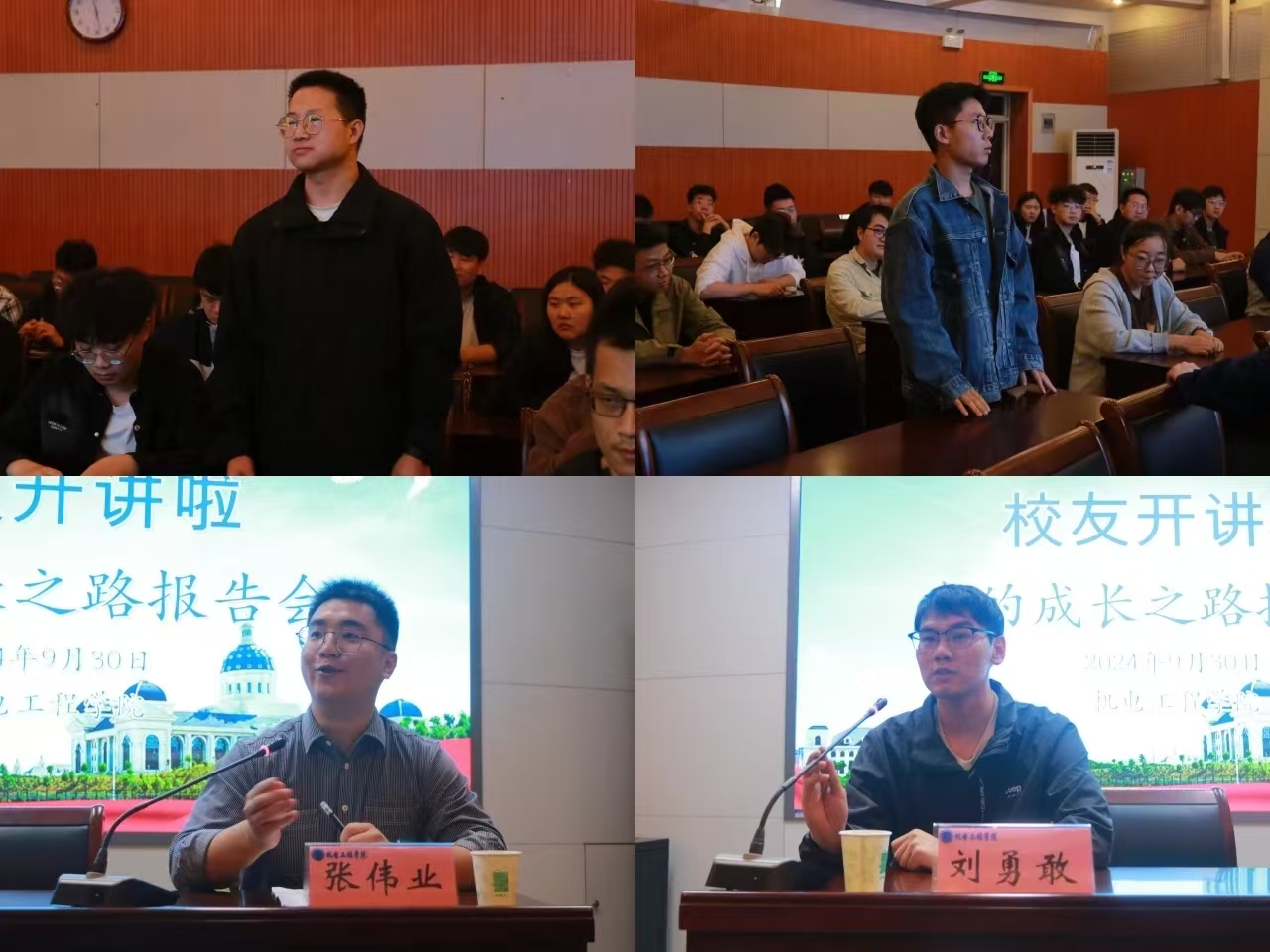 于大礼堂100人报告厅举办“校友开讲啦”——我的成长之路报告会。本次报告会邀请了2013级机械专业的两位优秀校友:上海华为公司高级工程师刘勇敢和北京安达维尔航空设备有限公司的张伟业。91猫先生