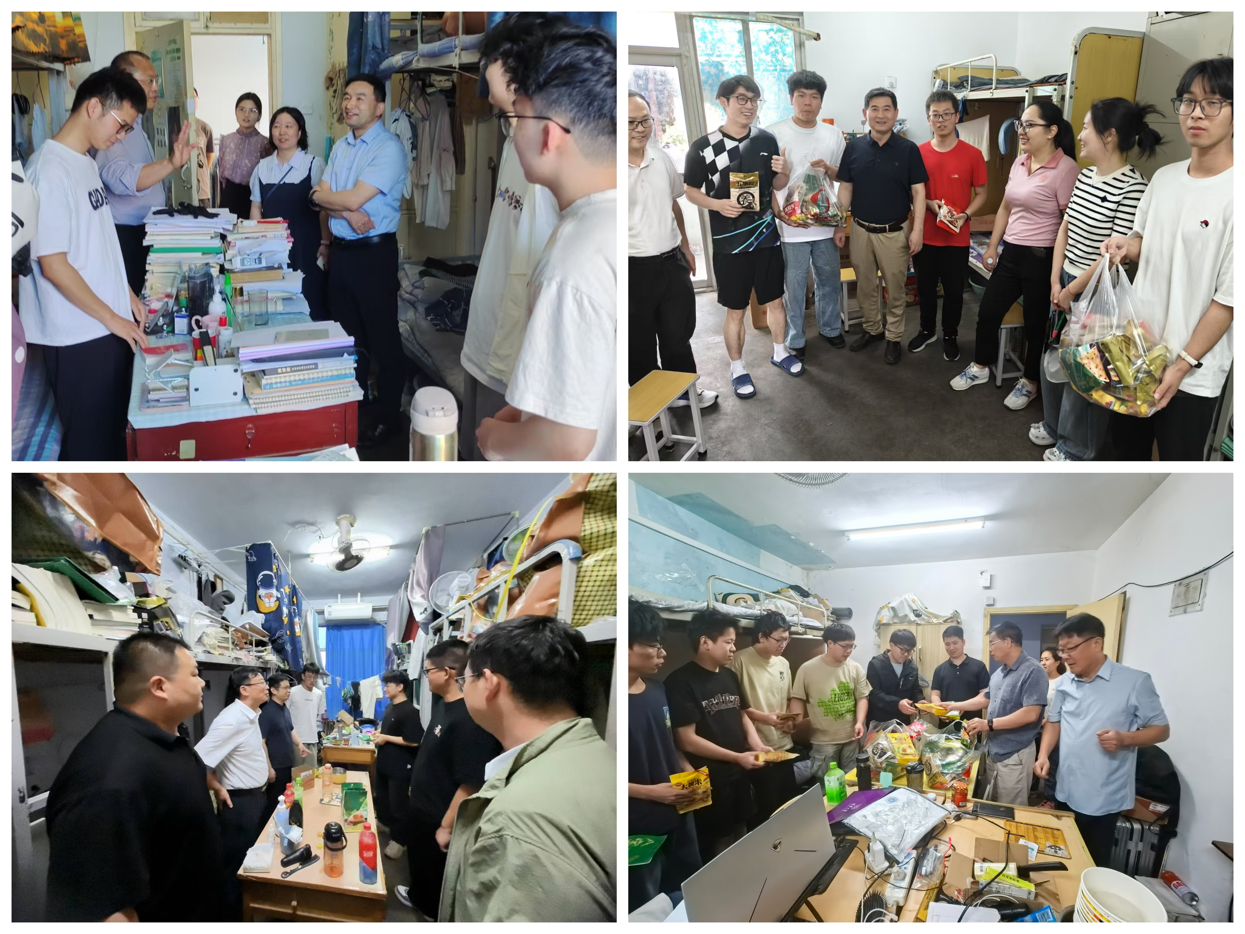 领导老师带队各系主任及专业辅导员在端午来临之际深入学生宿舍,看望慰问在校学生,传递节日温暖与关怀。