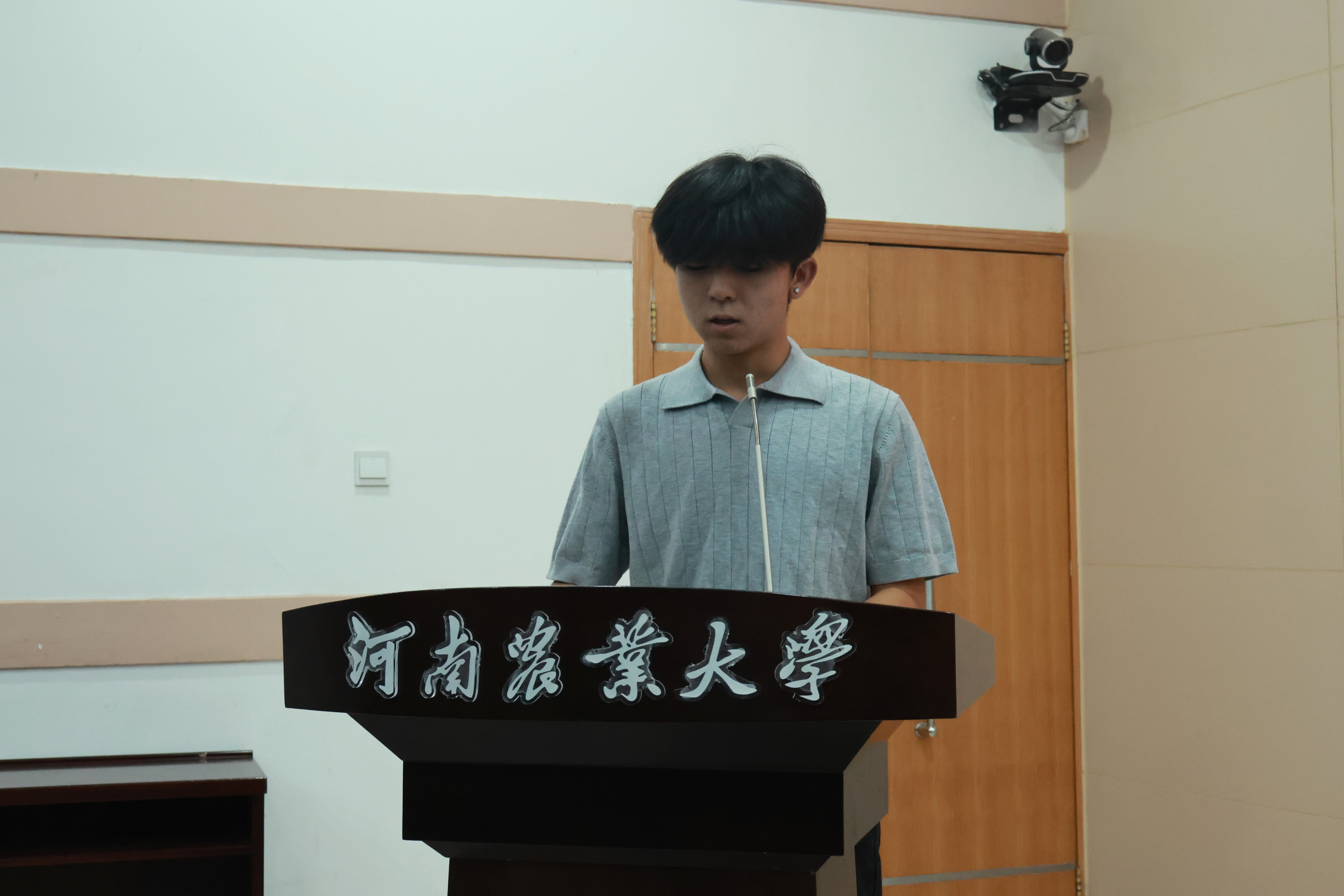 青马班第八期优秀学员代表张文韬上台发言。他代表学员承诺勤学善思、明德修业、明辨笃行、脚踏实地,以青春之姿践行使命,为民族复兴贡献力量,并祝愿培训圆满成功。
