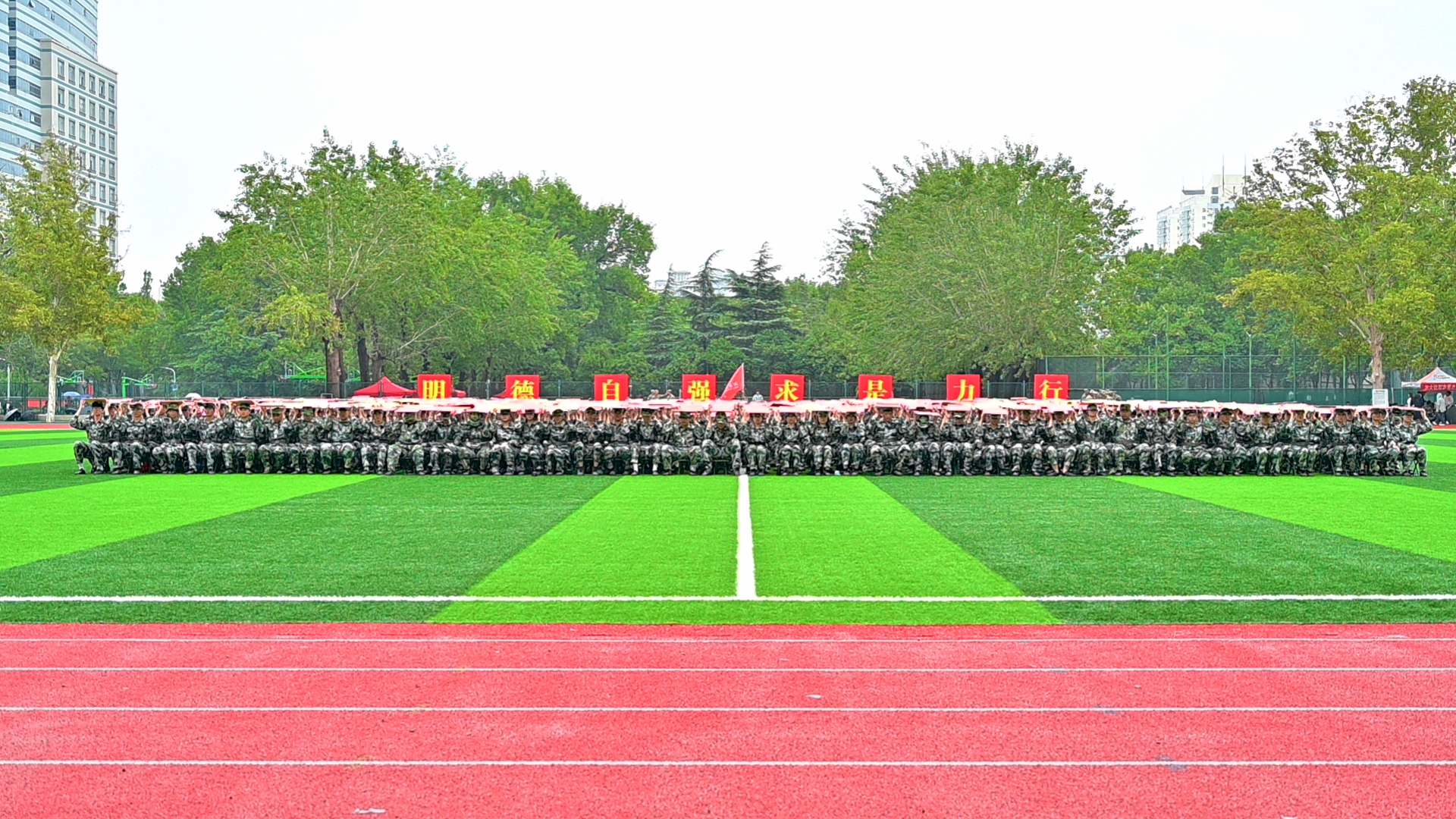 学子作为重要一员,紧跟指令、默契配合,与其他学院同学相互配合,调整站位,稳稳呈现完整图案,满是集体荣誉感。