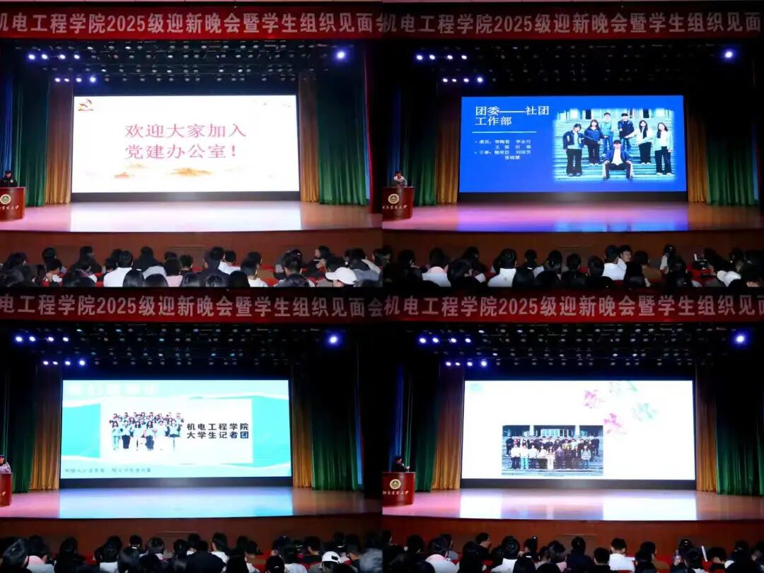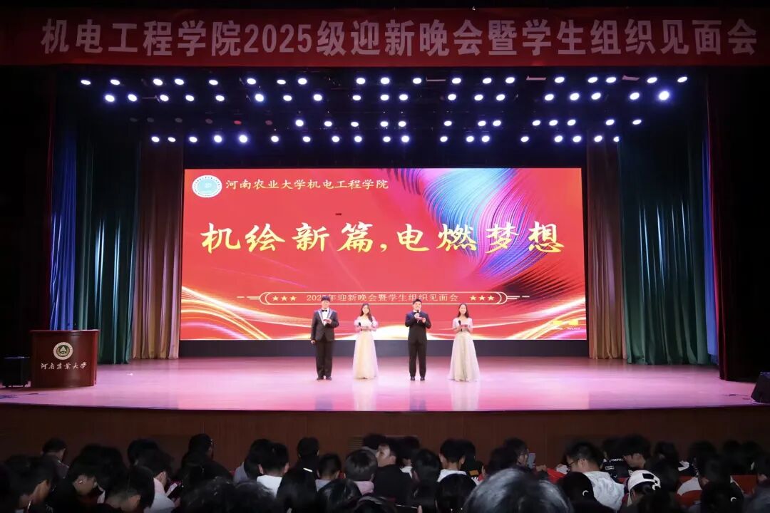 在文化路校区千人大礼堂举办2025级迎新晚会暨学生组织见面会。学院领导老师,学生组织成员与2025级全体新生欢聚一堂,以青春之名搭建交流桥梁,以多元节目为新生的大学生活拉开精彩序幕。