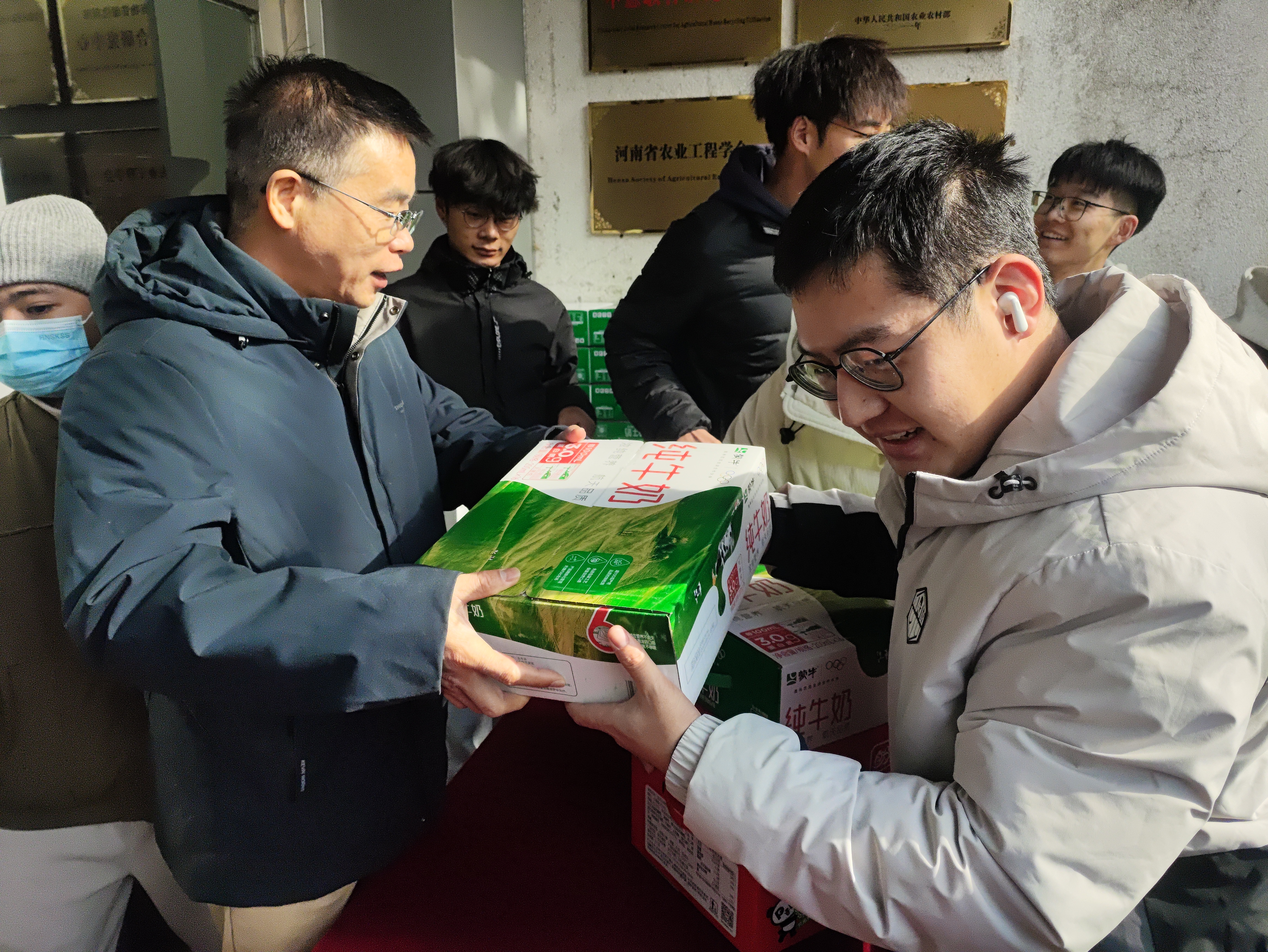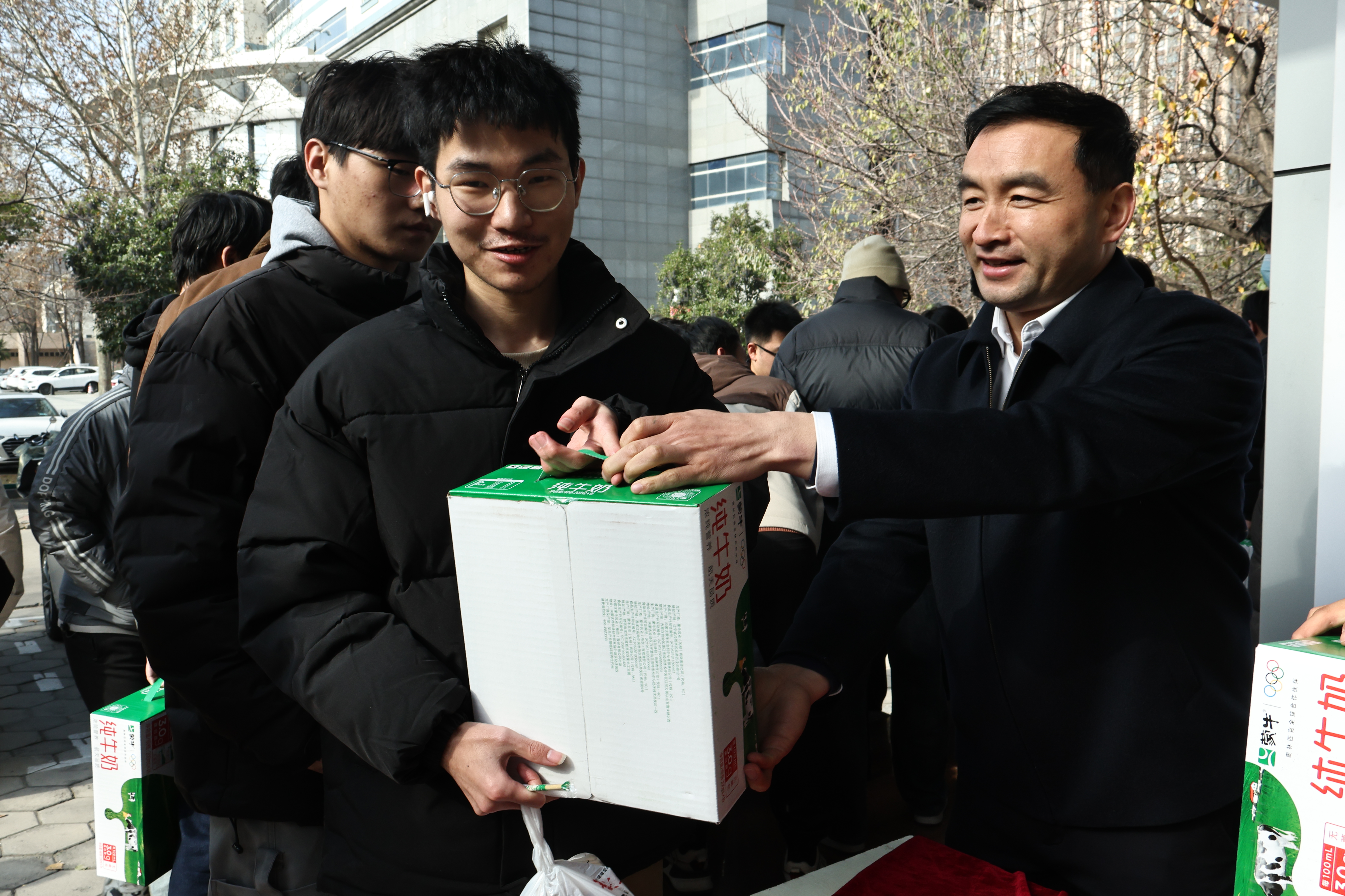 讲话完毕后,学院领导与老师们有条不紊地为同学们分发了精心准备的面包和牛奶。学子们双手接过这份暖心物资,脸上洋溢着感动与喜悦的神情。物资分发结束后,大家面带笑容相互致意,这一温馨场景既见证了学院对考研学子的深切关怀与鼎力支持,也定格了同学们心怀梦想、奋勇前行的坚毅模样。