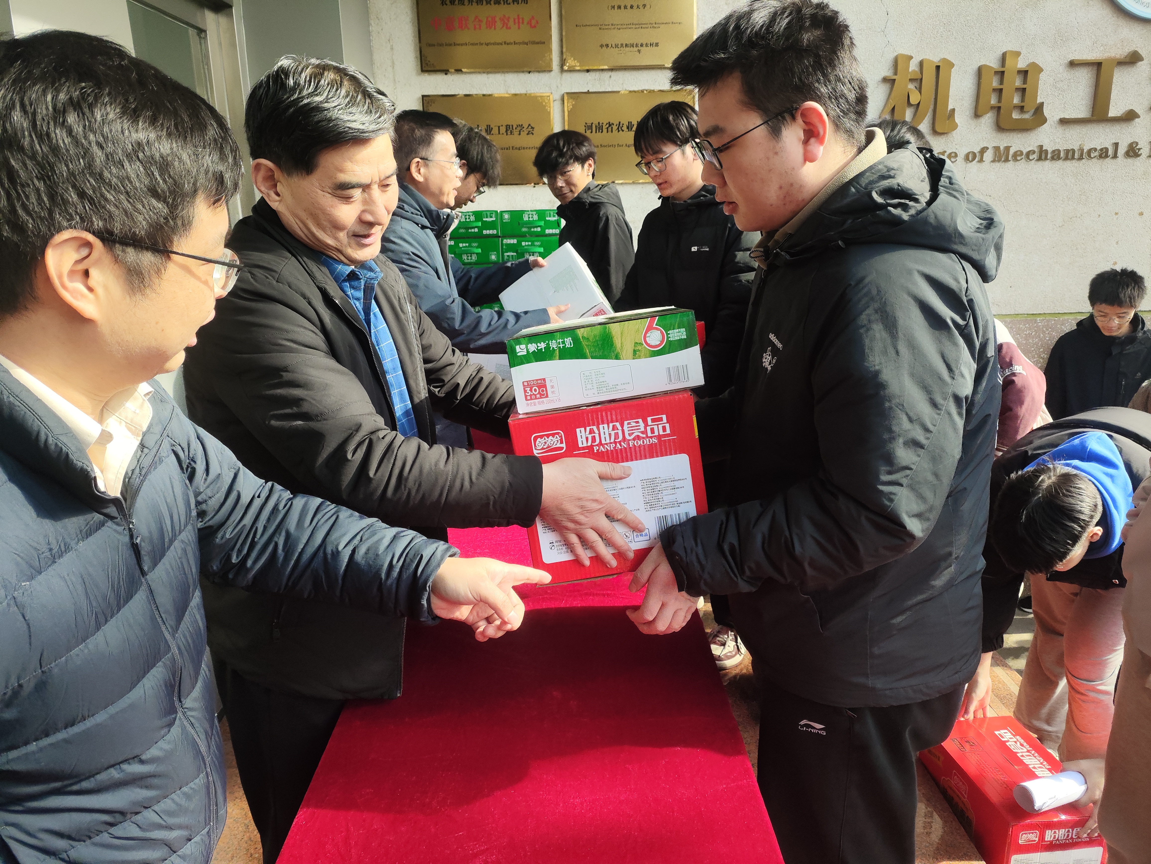 于文化路校区15号楼举行“研途励志凌云霄,机电暖心伴逐朝”考研送温暖活动。院党委书记贾云飞,院长李炳军,院党委副书记宋晶,副院长胡建东参加此次活动,向学院所有奋战在考研路上的学子发放考研加油礼包为他们鼓劲续航。