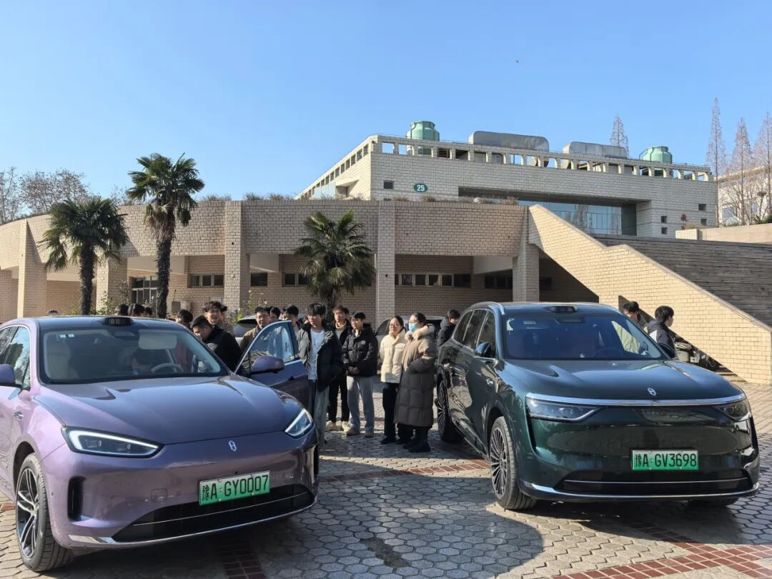介绍完毕后,他带领同学移步至大礼堂外,近距离围观现场展示的智选车实物,仔细了解车辆的性能与设计细节,现场互动氛围浓厚。