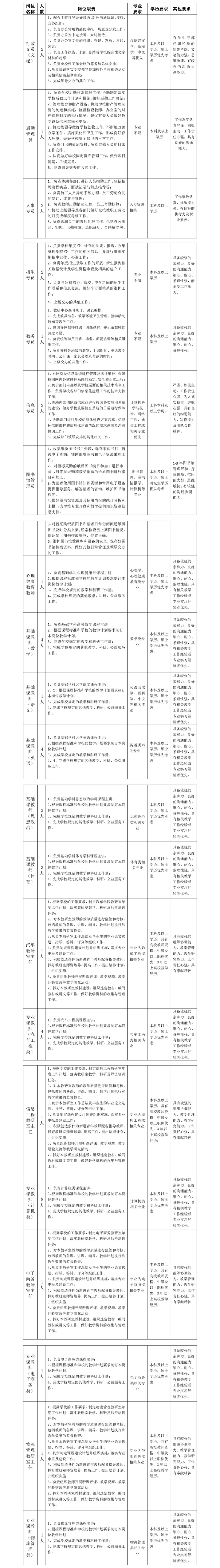 学院立足郑州,面向河南,辐射全国。依托汽车制造产业,形成以汽车制造与汽车服务类专业为主体,以电子信息技术类和电商物流类专业为两翼的框架结构,并开设语文、数学、英语、思政、体育等基础教学科课程,致力于培养基础理论扎实、动手能力强、综合素质高、具有创新精神的技术技能型人才。